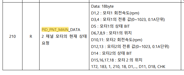 - 아래의 com.hpp 파일과 Datasheet 확인 결과 PID_MAIN_DATA_t Structure의 member 중 mtr_pos_id1, 2가 각각 왼쪽, 오른쪽 바퀴의 Encoder 값을 저장함을 확인