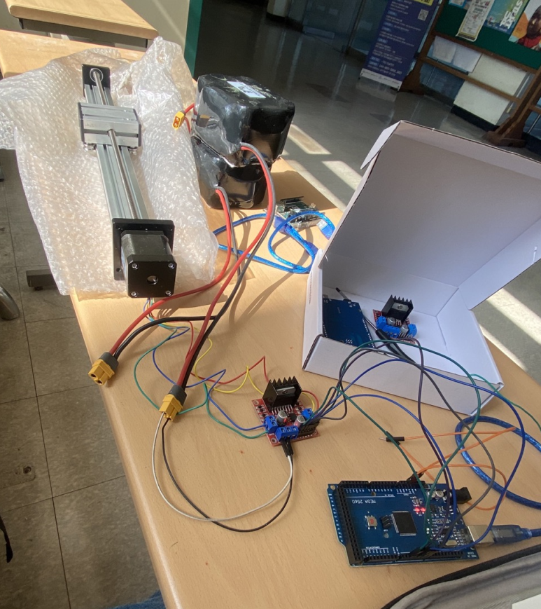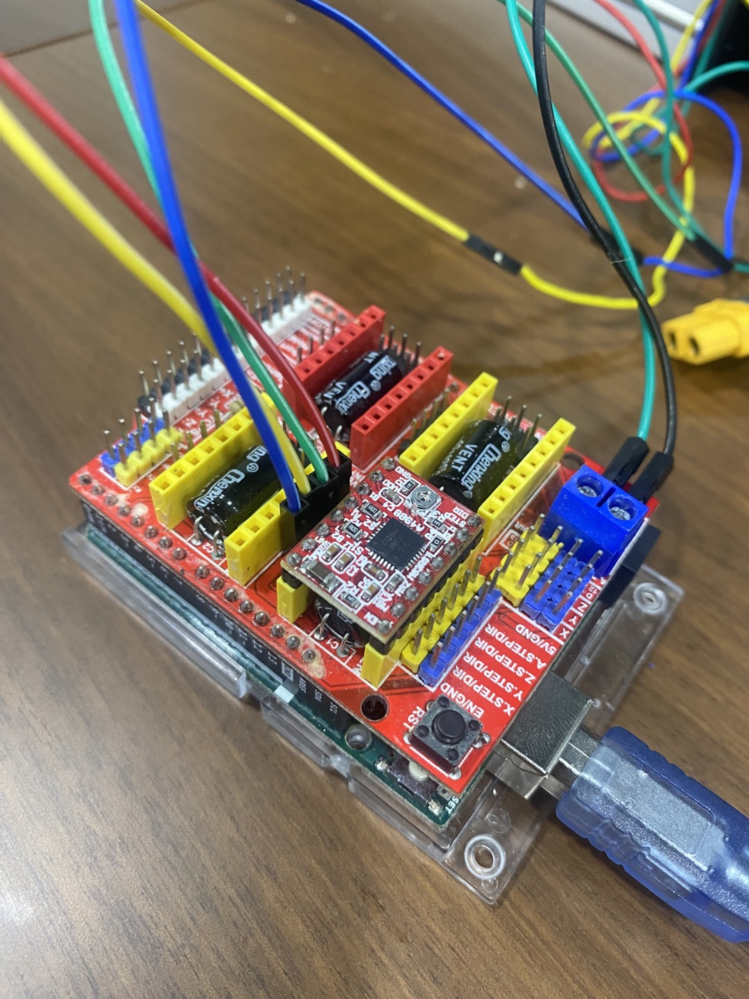 - 아래 사진과 같이 Arduino 위에 CNC Sheild를 얹고 A4988을 통해 Step Motor 제어 (24V 인가)