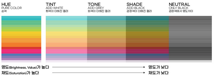 컬러 및 색상에 대한 디자인 용어 - HUE, TINT, SHADE, NEUTRAL