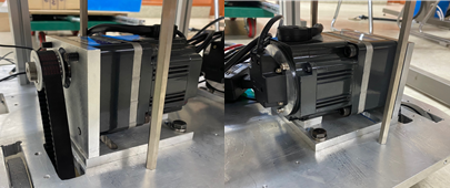 - Frame 상단의 motor로부터 belt를 이용하여 동력 전달
