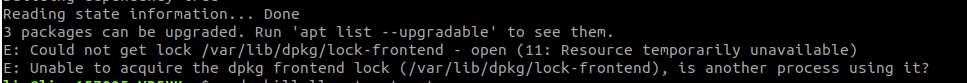 E: Could not get lock /var/lib/dpkg/lock-frontend - open (11: Resource temporarily unavailable)