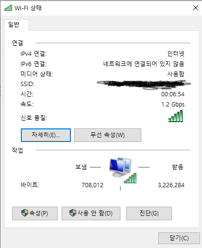 - WiFi 상태 창에서 '자세히' 클릭