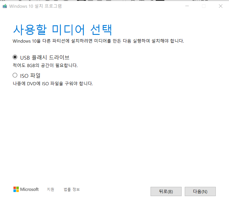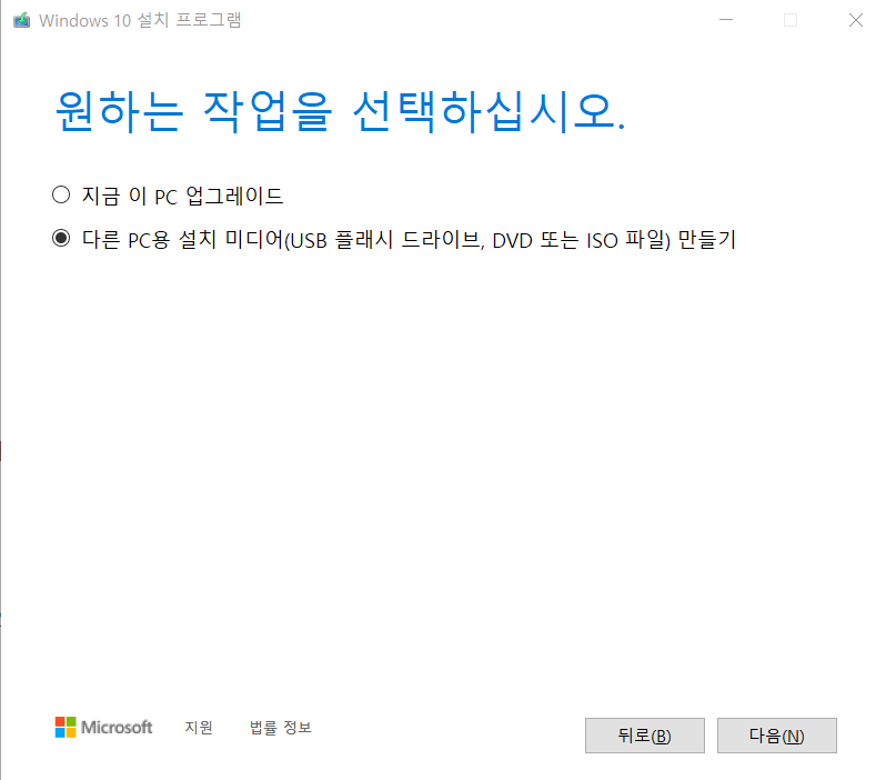 - 다른 PC용 설치 미디어 선택