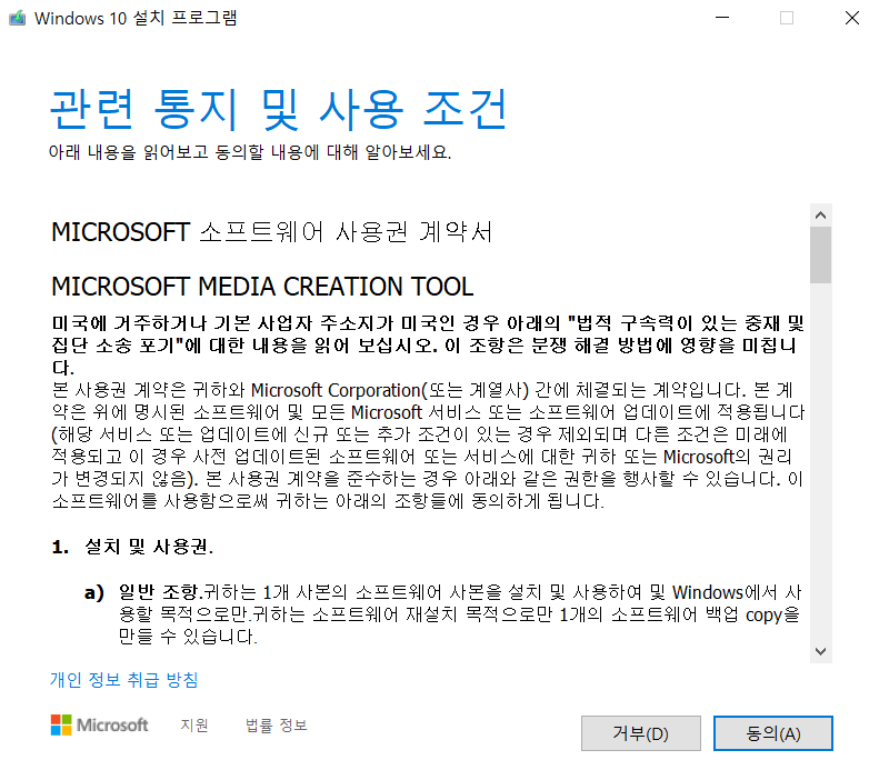 - 아래 링크에서 'Create Windows 10 installation media'를 선택 (Windows 10)