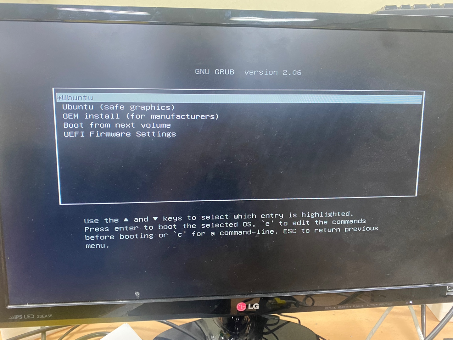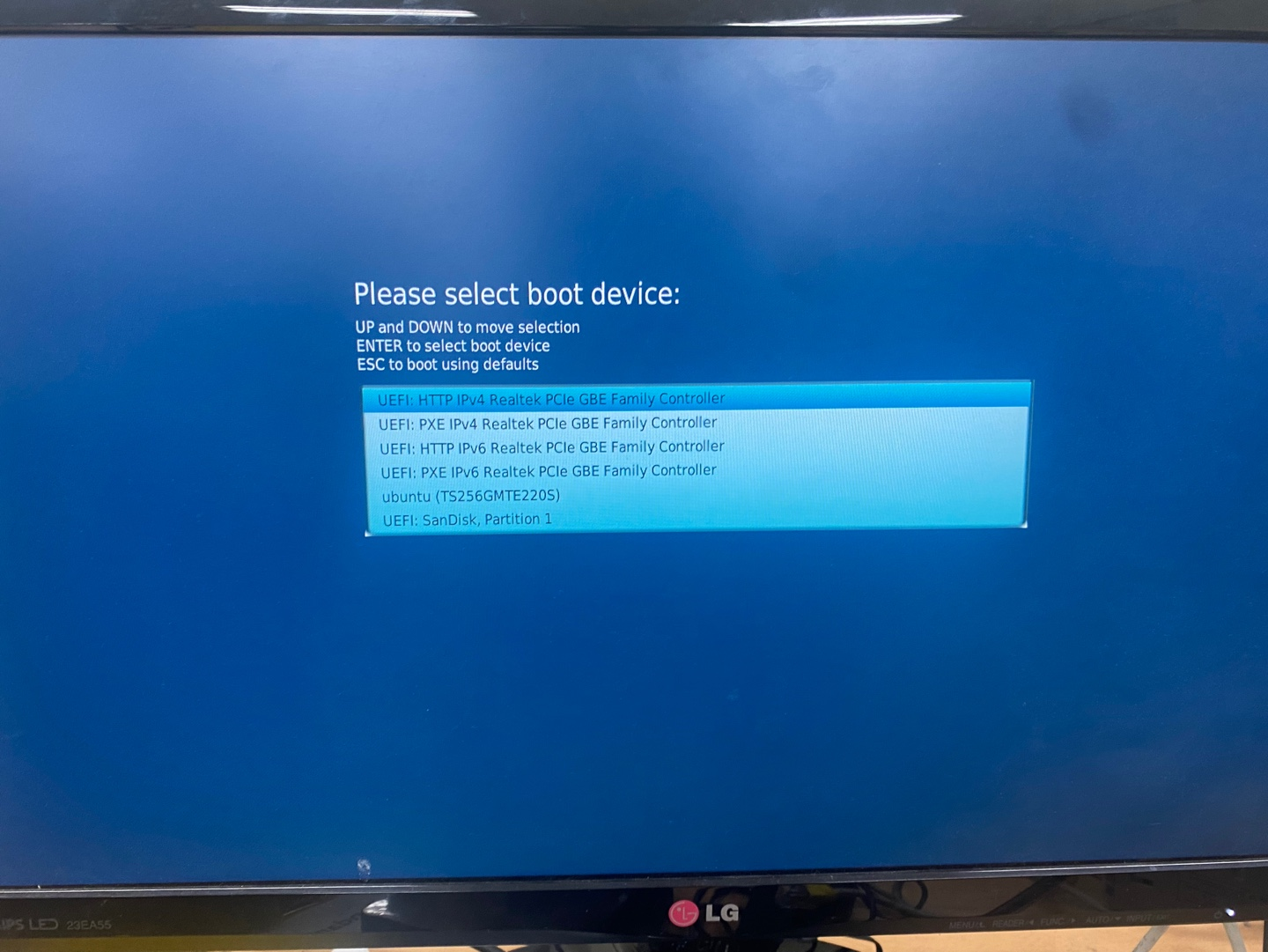 - 다른 Distribution의 Ubuntu가 설치되어 있을시 바로 F10키를 눌러 boot device 변경