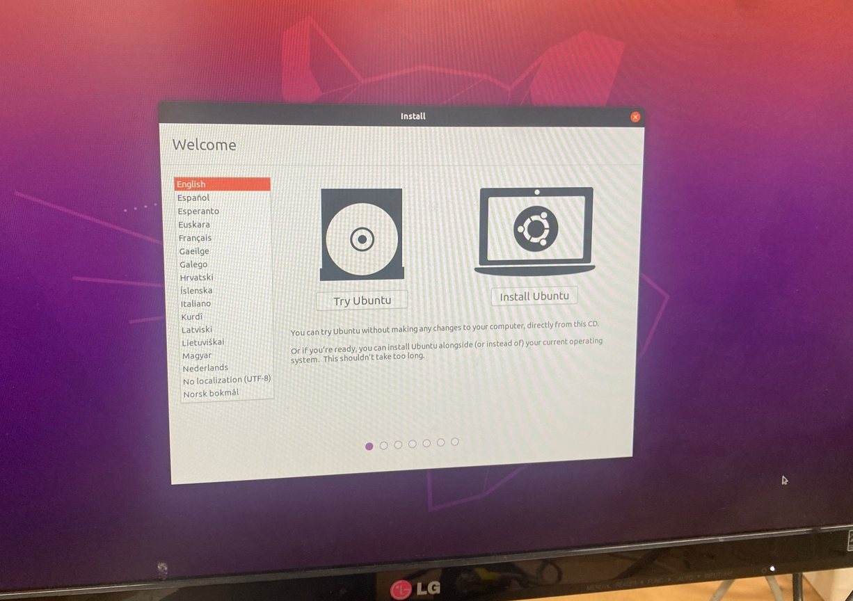 - 본래 18.04를 사용하려 했으나 NUC 11 Essential Kit 내부의 WiFi를 지원하는 Wireless-AC 9462가 18.04 이후 버전의 kernel driver를 필요로 하여 20.04 설치