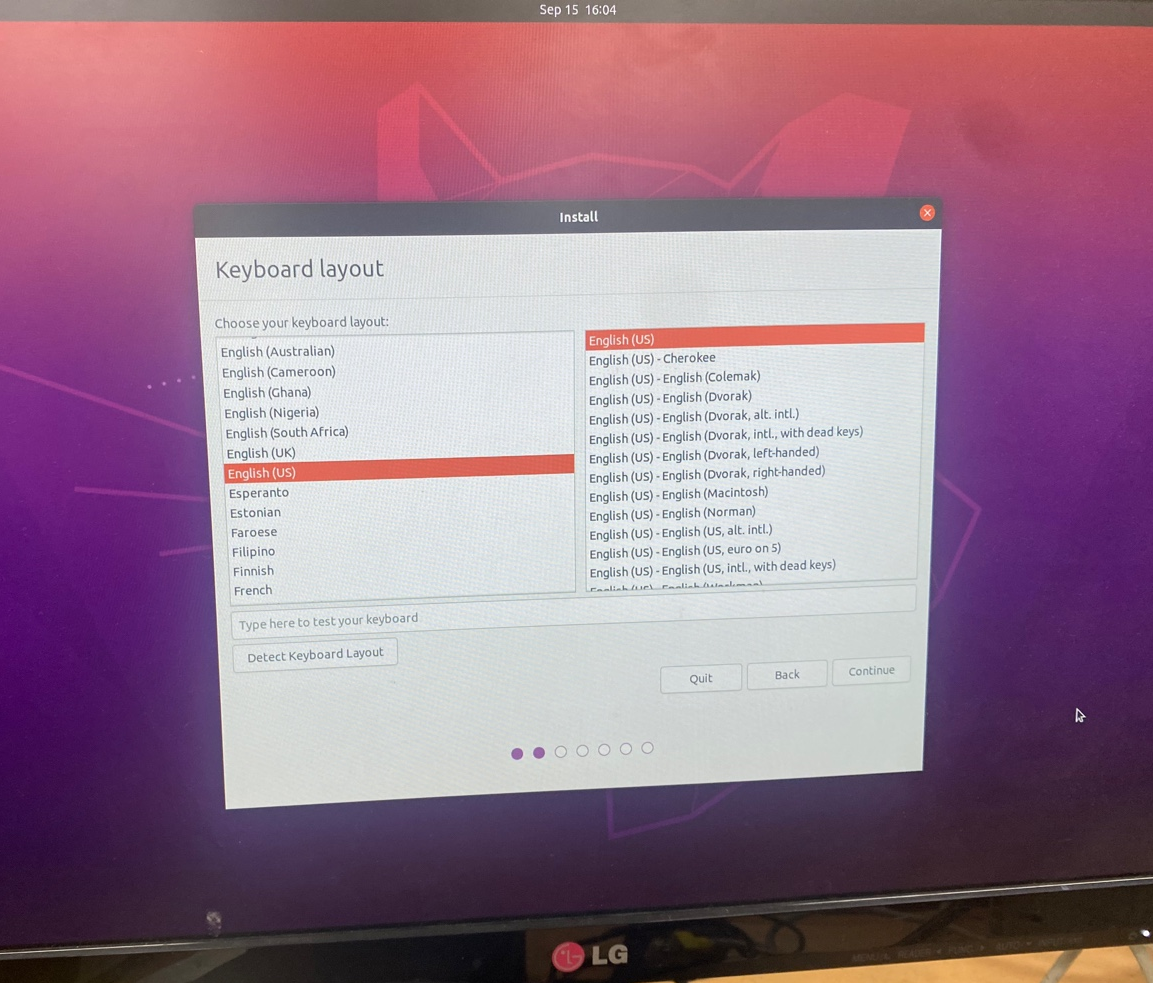 - Keyboard Layout을 English로 설정