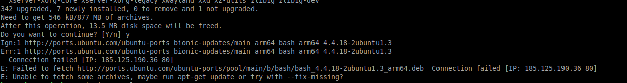 - apt upgrade가 되지 않는 오류 발생