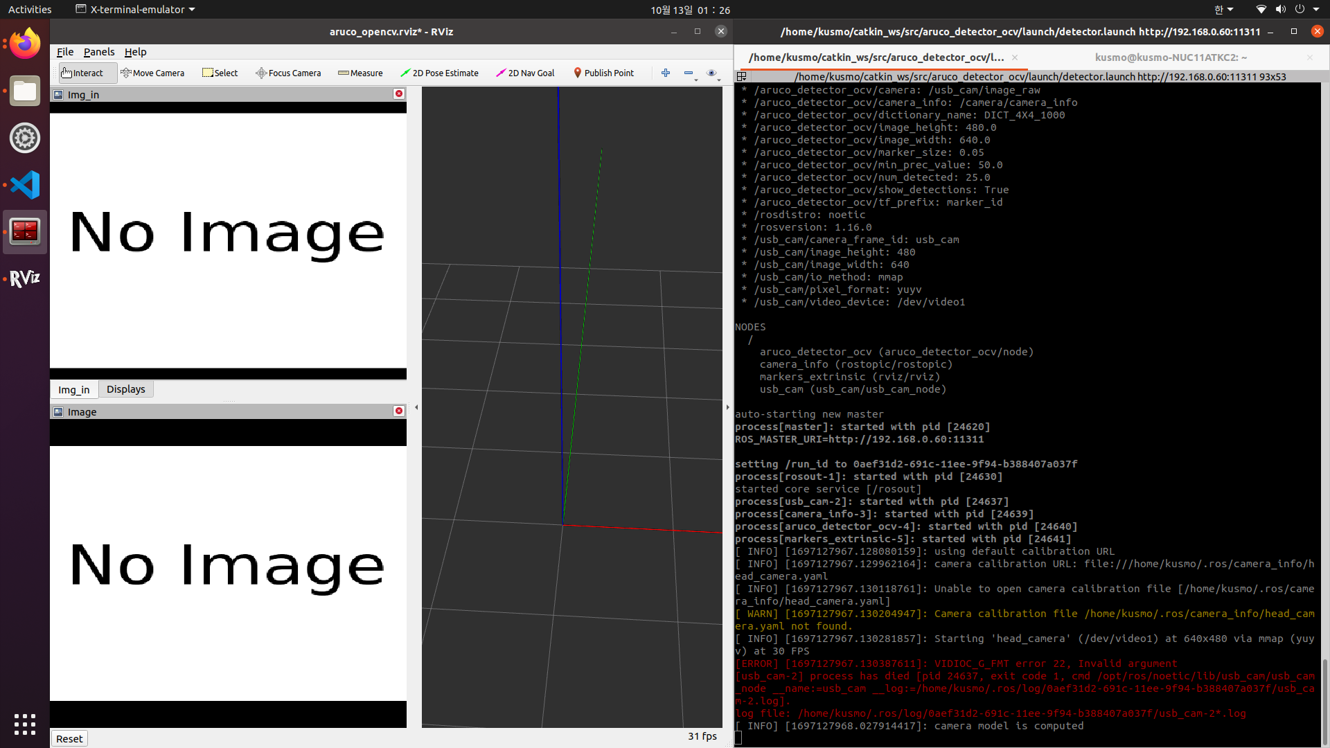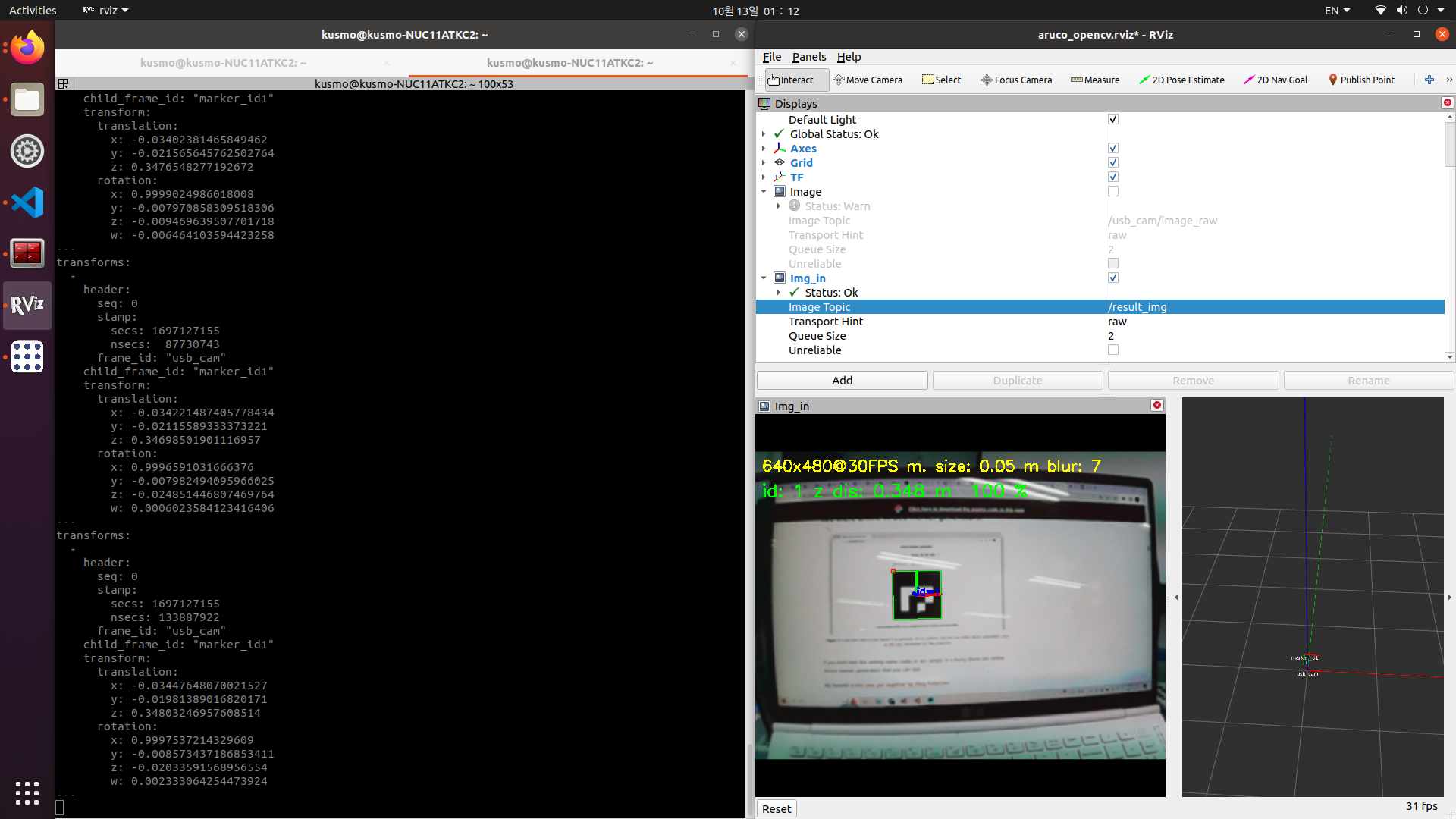 - Intel NUC 상에서 USB Camera를 통한 Aruco Marker 인식 진행