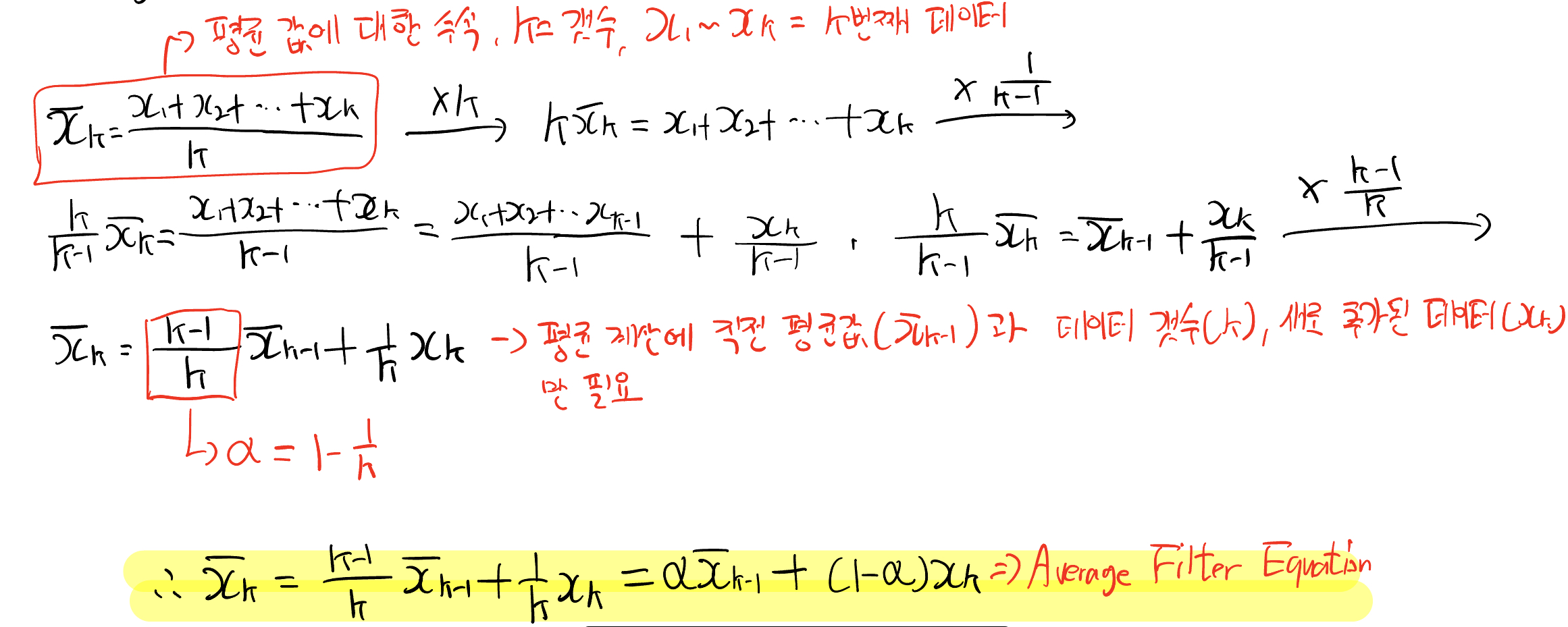 - (1 - N) x 이전까지의 평균 + N x 현재값 = Average Filter