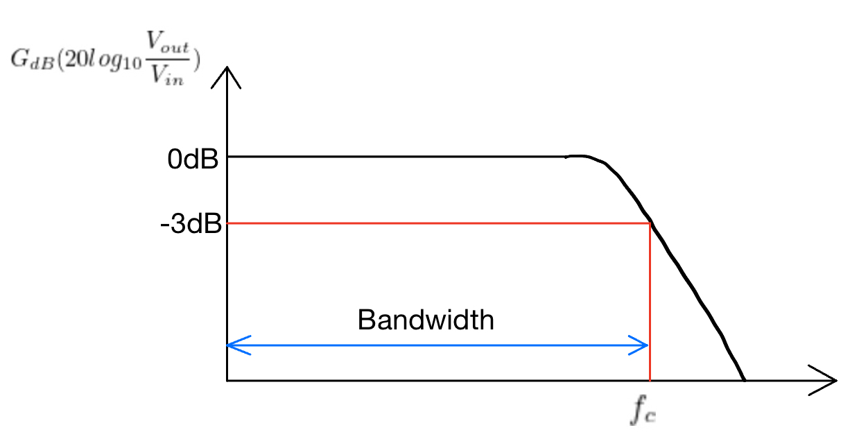 - 위와 같은 주파수 응답 특성 곡선에서 -3dB가 되는 지점을 Cutoff Frequency라 한다