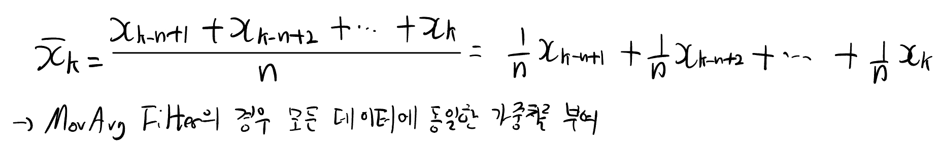 - Moving Average Filter의 경우 아래와 같이 모든 데이터에 동일한 가중치를 적용