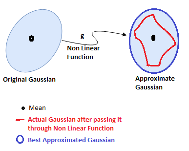 - 원래의 함수 x값을 대표할 수 있다고 여겨지는 몇 점들을 Non Linear Function에 대입시켜 새 차원의 평균, 분산을 알아내는 방식
