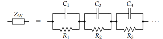 - Warburg Impedence에 관한 간단한 상미분방정식은 없으나 다수의 RC 병렬 구조의 직렬 연결을 통해 근사할 수 있다