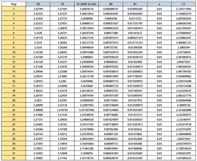 - 5s 간격의 방전, 10s 간격의 충전 단자 전압 Data를 측정 Vt 값으로 활용