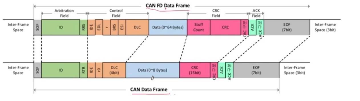 - 기존 CAN과의 호환성 : Data 구간을 제외한 나머지 Field들은 이전과 동일