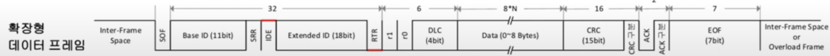 - DLC(Data Length Code) : 0~8 byte 까지는 기존 DLC 크기 동일
