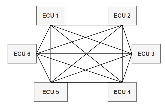 - 이 때, 차량에 요구되는 서비스가 늘어남에 따라 ECU가 증가하는 경우, 1:1 통신을 하는 UART의 특성상 수많은 연결선이 필요로 해짐