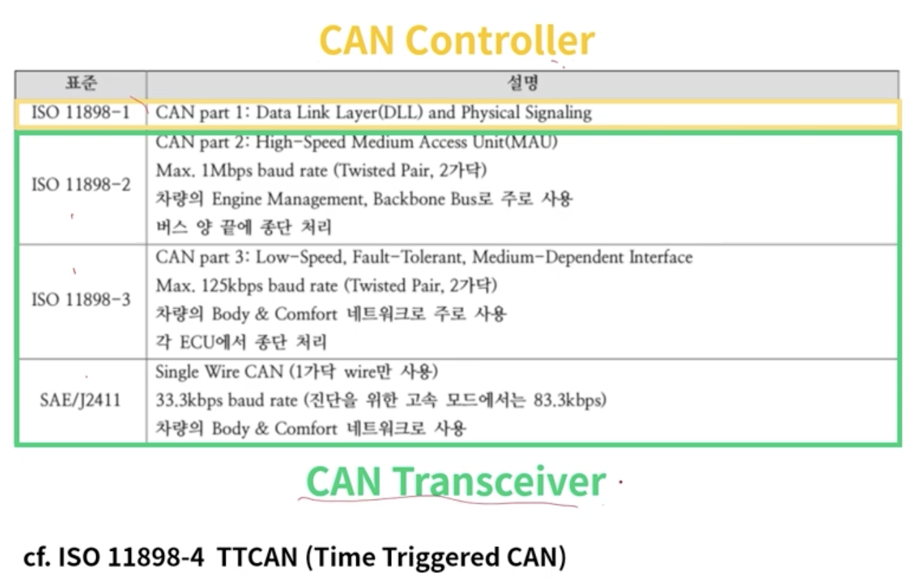 - ISO11898-2, ISO11898-3 : 모두 CAN Transceiver에 해당