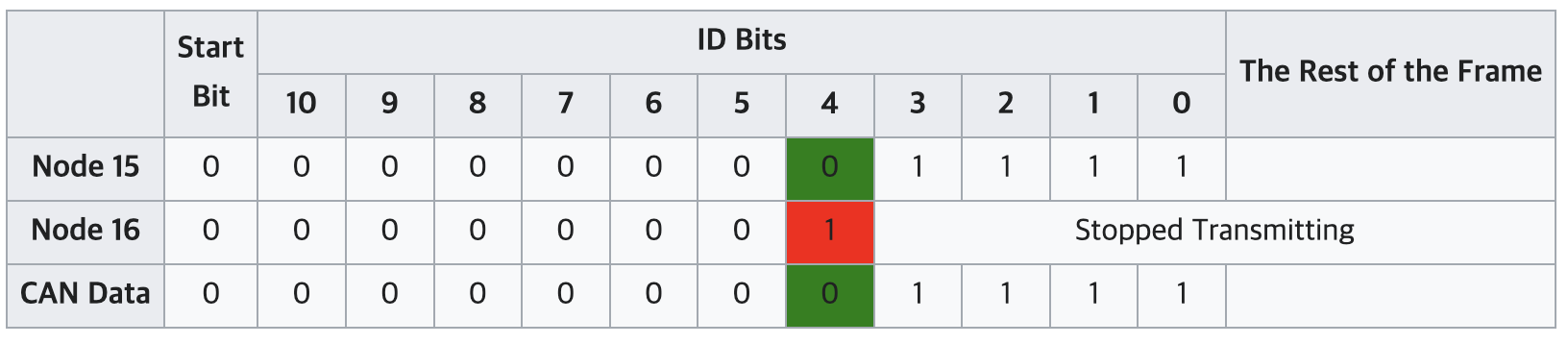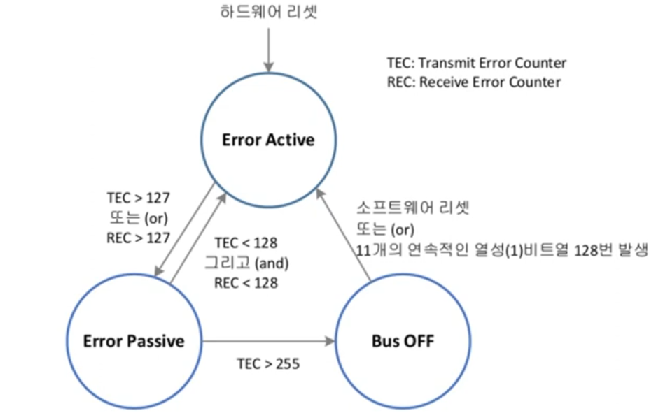 - 이 경우 Error Passive 상태에 있는 Node들은 다른 node에게 우선순위가 밀려 bus를 사용하지 못하게 됨