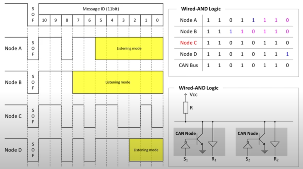 - 모든 Node가 Bus Master가 되어 Bus가 Idle 상태라면 언제든 Message 전송이 가능