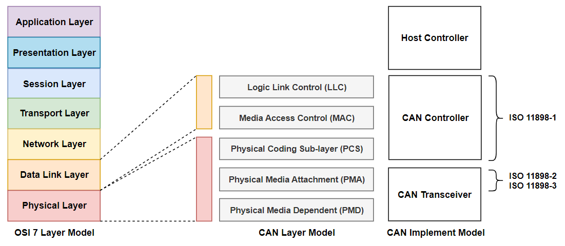 - ISO11898-1 : CAN Controller에 해당하는 부분을 표준화하여 사양으로 정리해놓은 것