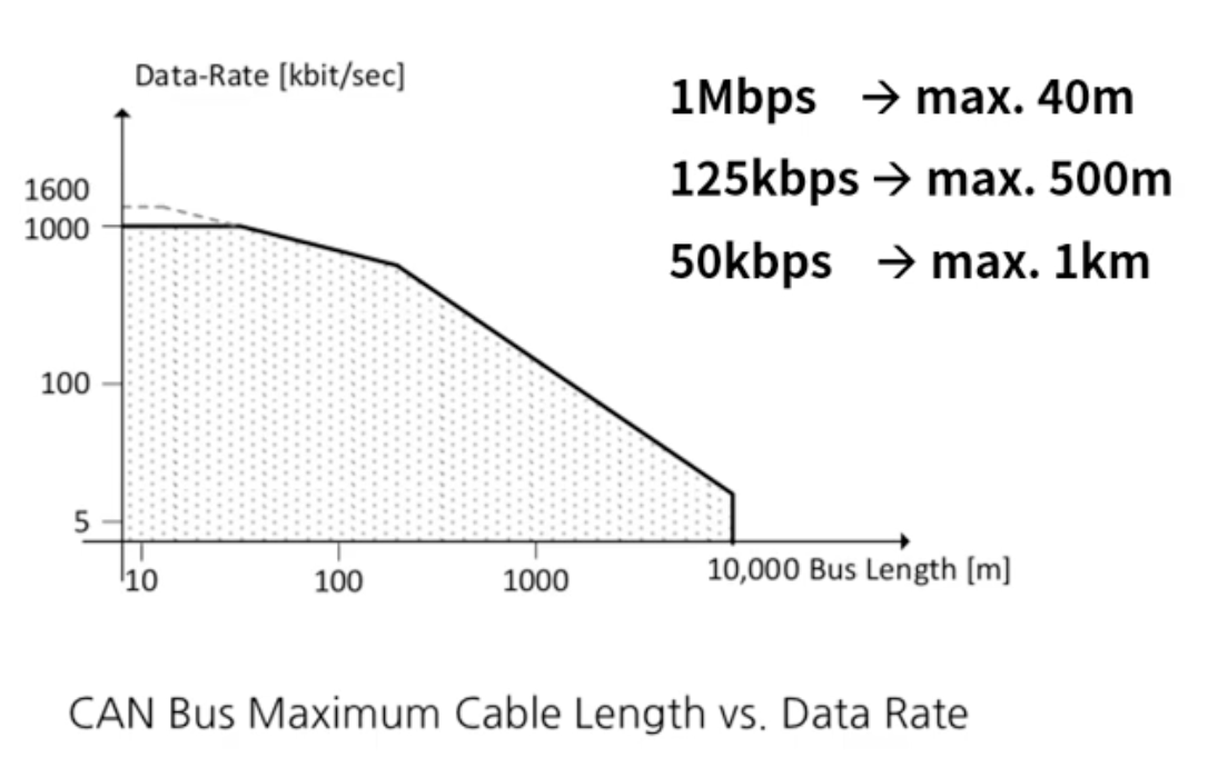 - 차동 신호(CAN High, CAN Low)를 사용하여 노이즈에 강하며 장거리 전송에 적당