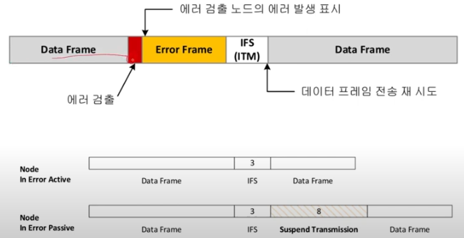 - Error Passive의 경우 Error가 많이 있는 상태이므로 IFS 이후 8bit의 Suspend Transmission 후 Data Frame 전송