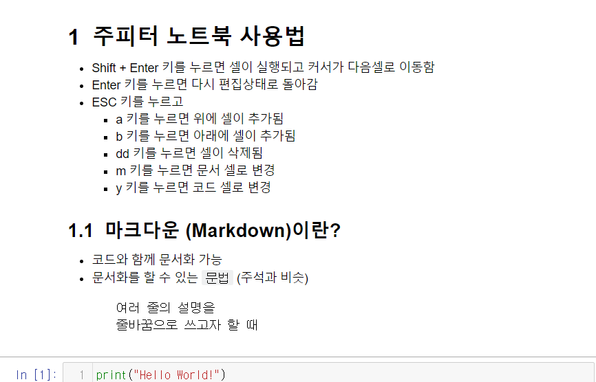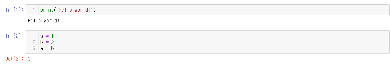 - 주피터는 위 처럼 코드들을 각각 작성 후 실행할 수 있다