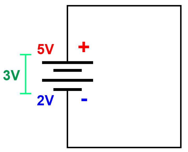 - 위처럼 +극과 - 극의 차이가 3V일 경우, 전압 측정은 그라운드를 기준으로 하나, 그 그라운드 점이 0V는 아님