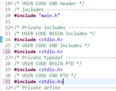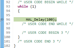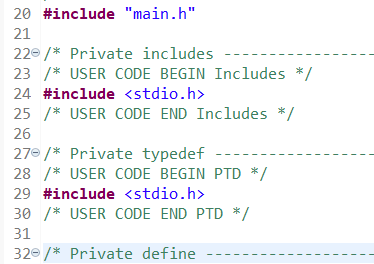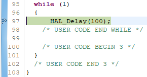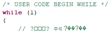 - 코드 작성은 USER CODE BEGIN XXX 과 USER CODE END XXX 사이에 입력