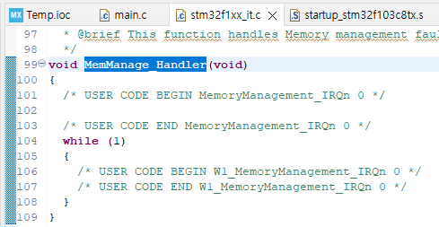 - 위의 함수를 stm32f1xx_it.c에 선언해줘야 하나 이도 ioc setting으로 설정 가능