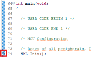 - HAL_init에 breakpoint 삽입 (더블 클릭)