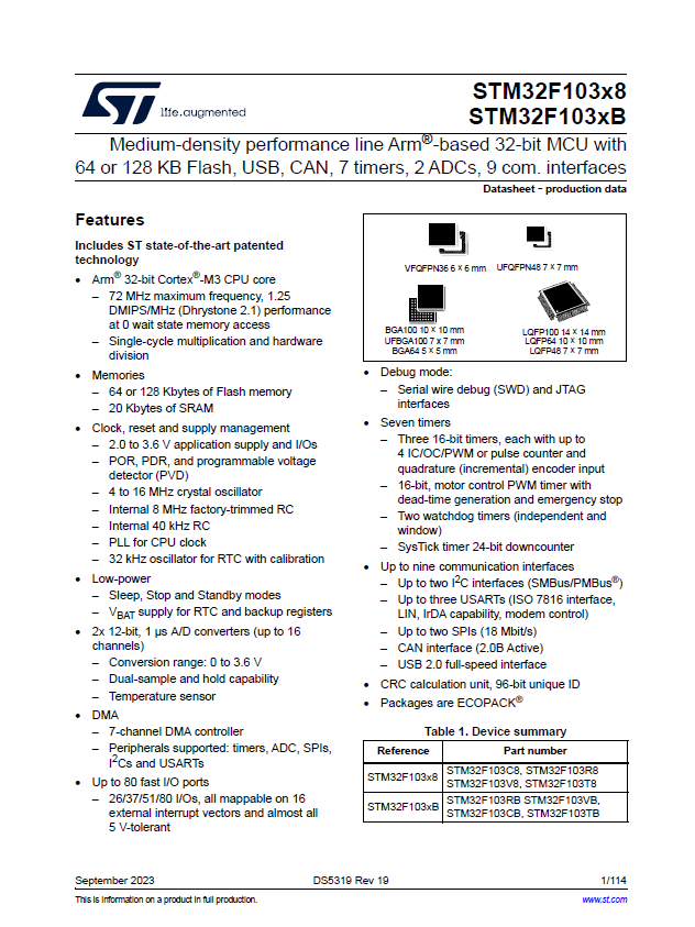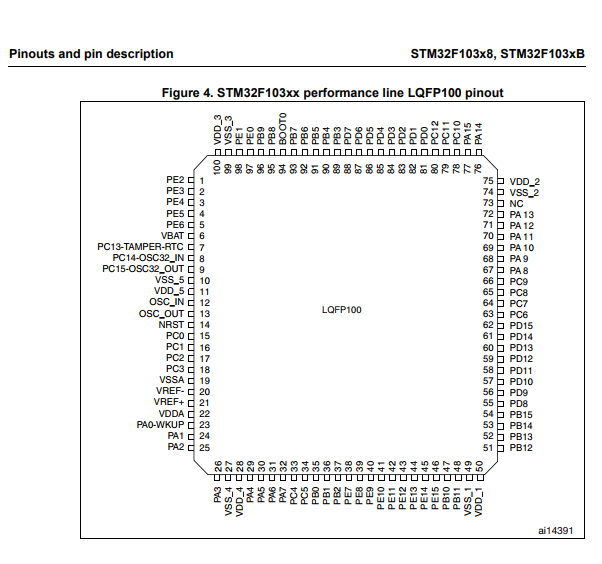 - Package의 LQFP48은 칩의 형태를 나타냄. 핀의 수는 기준점으로부터 반시계방향으로 셈