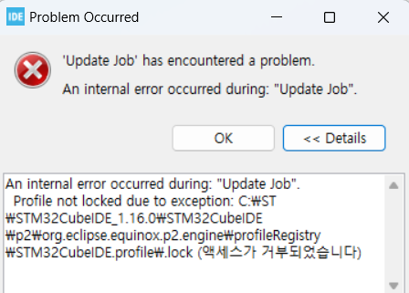 - 위와 같은 Update Job, Workbench 관련 오류 발생