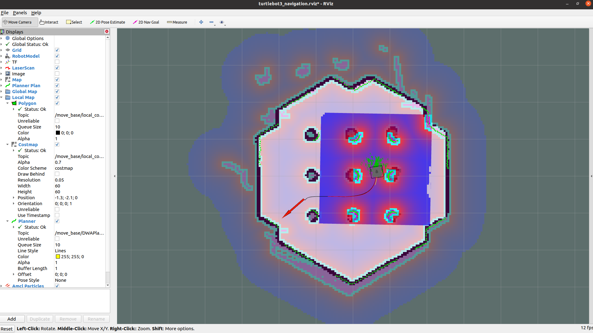 $ roslaunch turtlebot3_navigation turtlebot3_navigation.launch map_file:=$HOME/gazebo_map.yaml