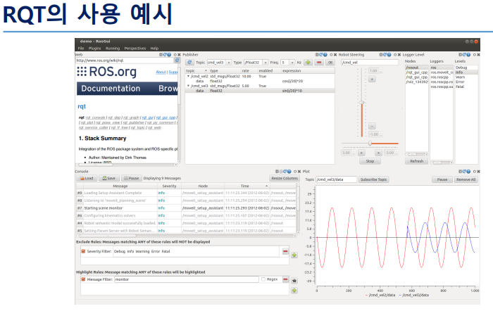 * RQT를 사용하면 GUI 형태로 ROS를 이용할 수 있고, GUI Tool 제작이 간단해짐
