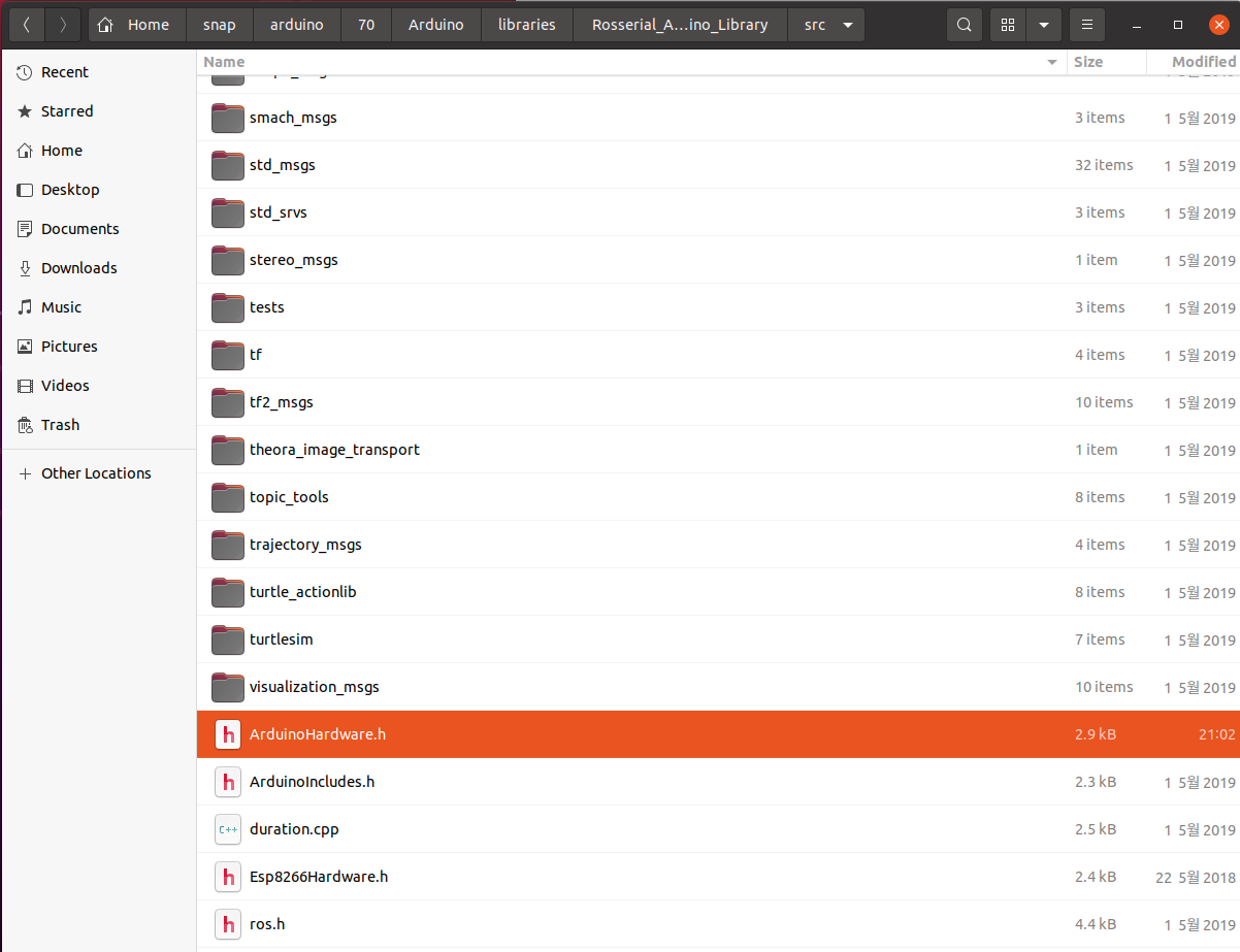 - /home/lim/snap/arduino/70/Arduino/libraries/Rosserial_Arduino_Library/src/visualization_msgs 디렉토리에 있는 ArduinoHardware.h 를 염