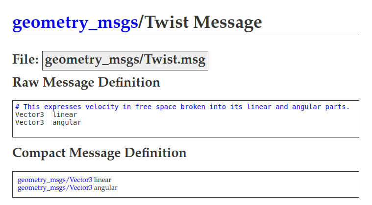 - /cmd_vel : Linear and angular velocity command (geometry_msgs/Twist Message)