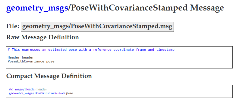 - /initialpose : The initial position and orientation of the robot using quaternions. (geometry_msgs/PoseWithCovarianceStamped) — RViz initial pose button publishes to this topic.