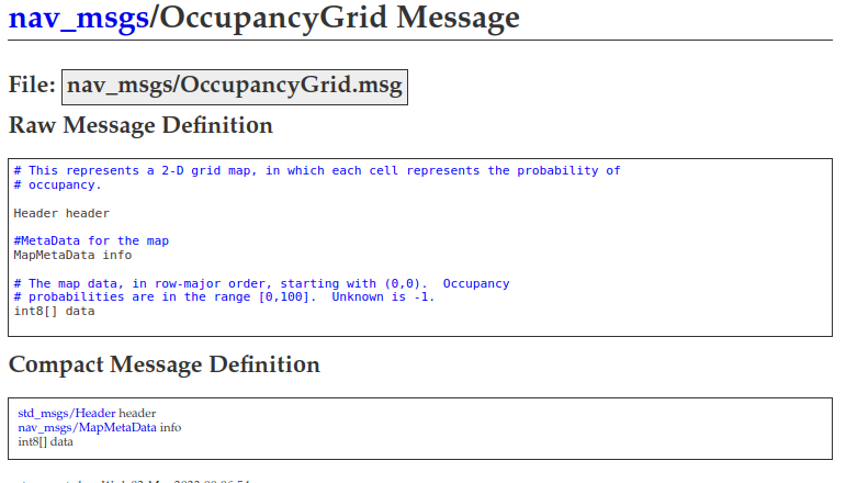 - /map : The occupancy grid map created using gmapping, Hector SLAM, or manually using an image (nav_msgs/OccupancyGrid)